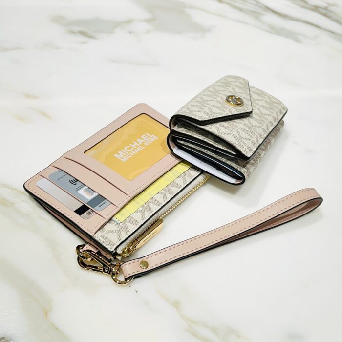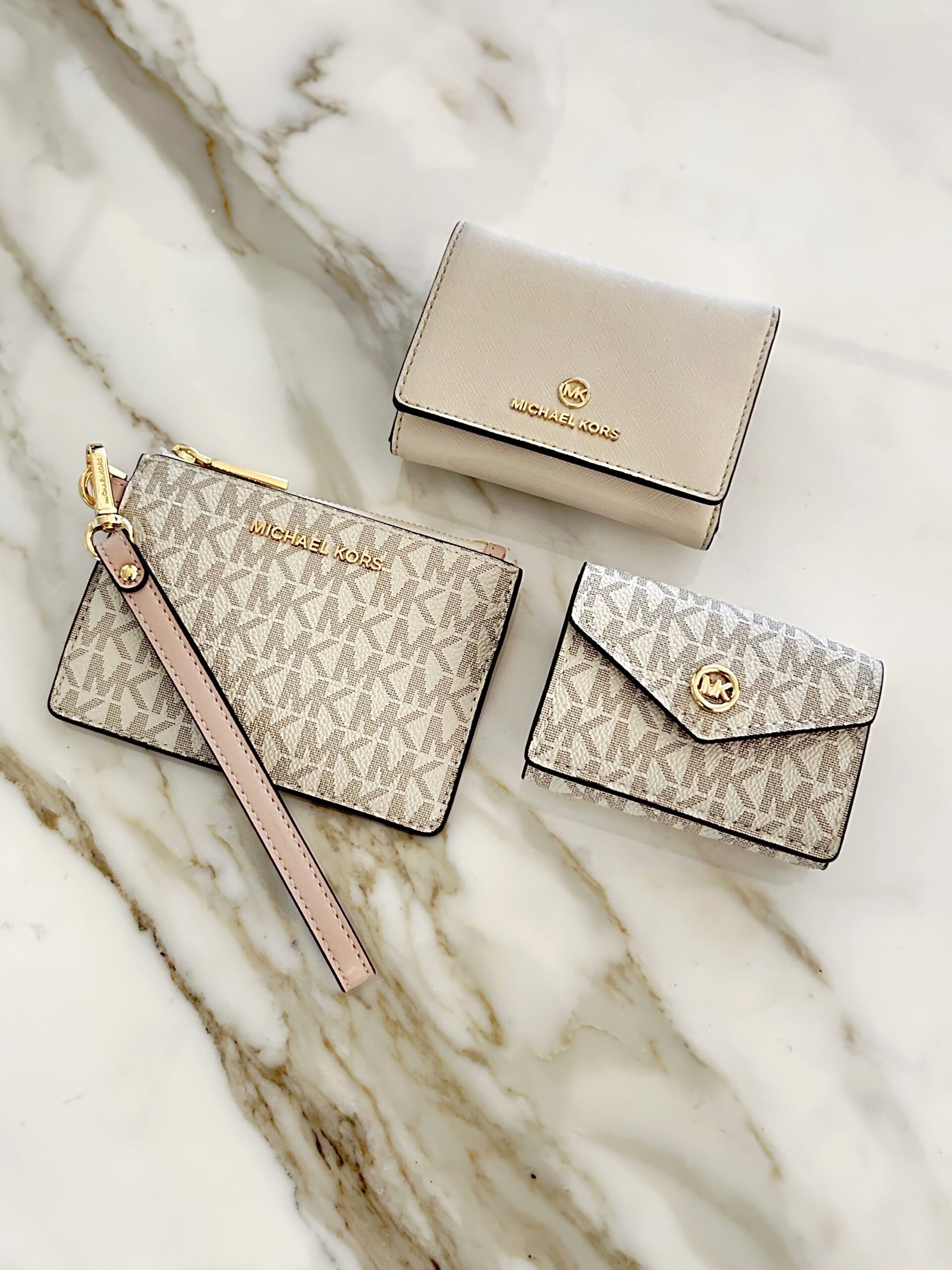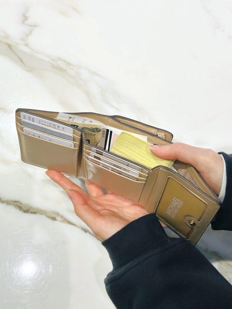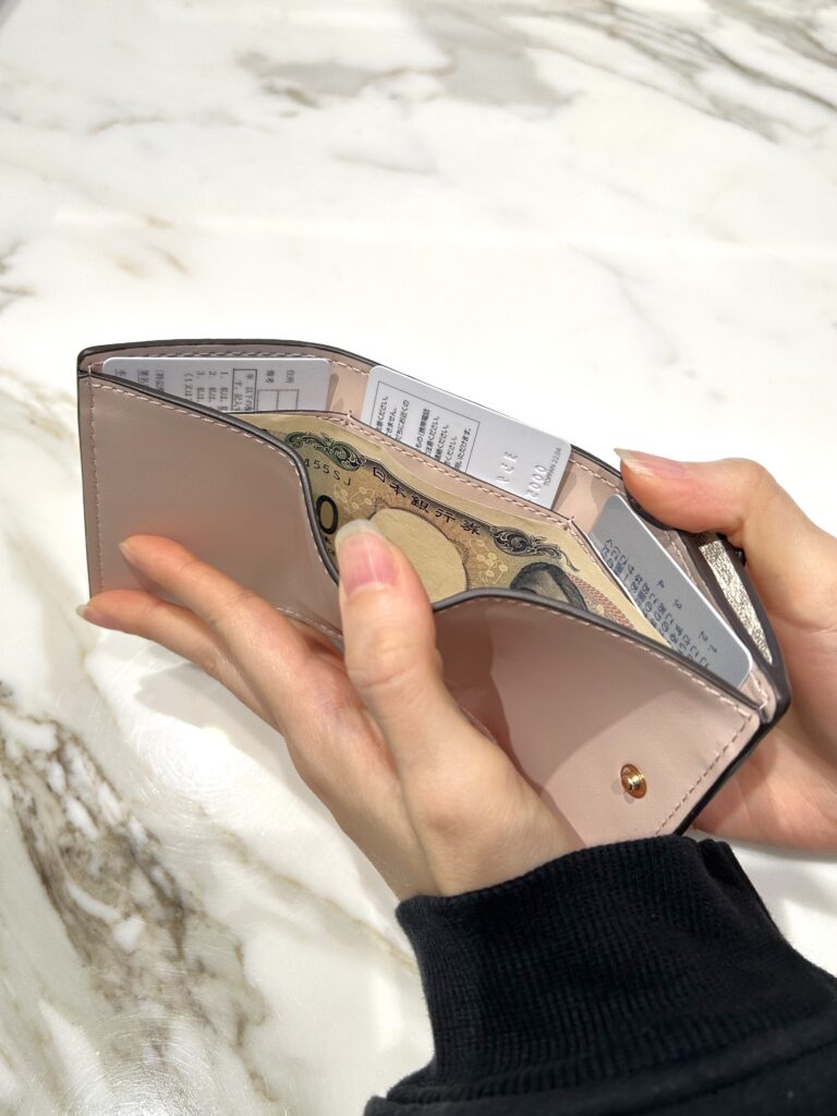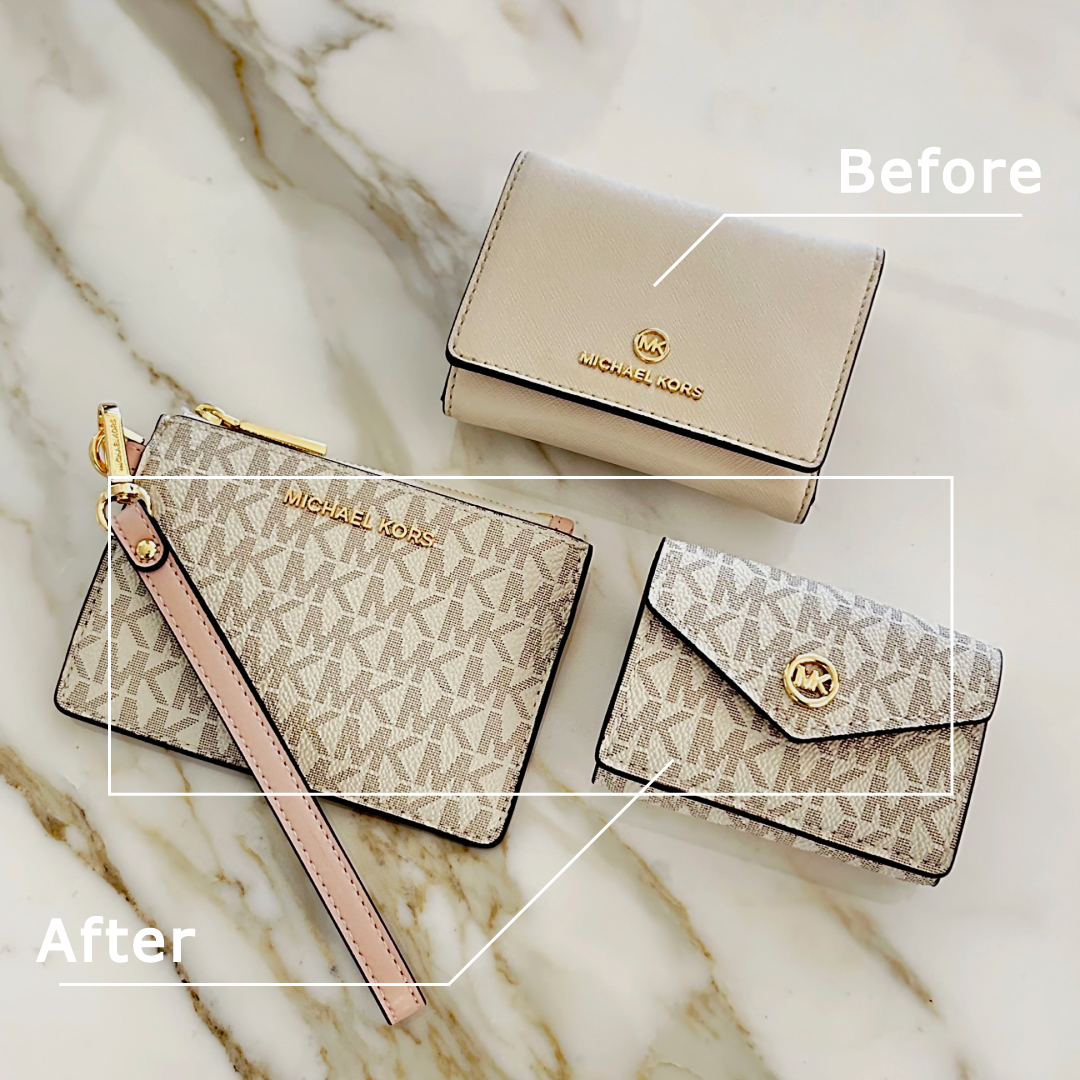 お財布パンパン問題を解決!「小分け」で叶えるスマート収納術【実録・春の断捨離!私らしいミニ財布デビュー】 FASHION 2026.02.24 3/5はスーパーラッキーデー!最強の金運が宿るとされるこの機会に毎日持ち歩くお財布をすっきりさせてみませんか?本連載はお財布の収納問題を抱えるMKスタッフ3人のリアルな断捨離プロセスをご紹介します。2026年版財布の断捨離術の鍵は「無理にすべてを捨てて小さな財布一つに押し込むのではなく、いくつかのケースに小分けして持ち歩く」こと。第1回目は、カードもレシートもつい溜め込んでしまう、20代女性・花崎さんのケースをお届けします。 お悩み相談者 ● EC担当 花崎さん(20代女性) ● 以前の財布:お札入れ、カードスロット、コインケースが充実していて「何でも入る」点が気に入り、1年前に購入。 Before ● いつもお財布がパンパンになっている ● カードが多いけれど、どれも必要なものばかりで減らせない ● 断捨離は最低限に抑えたい ● レシートをつい捨てずにとっておく癖がある ● 診察券、ポイントカード、引換券なども常に持ち歩きたい After 思い切って現金派からキャッシュレス派へ移行。すべてのお金やカードを1つの財布に入れるのをやめ、”どうしても”現金が必要な時だけお財布を持つスタイルにチェンジしました。 (断捨離したもの:不要なレシート、使用頻度の低いカード〇〇枚) 普段使い用(平日メイン) ● JET SET コインパース スモール ● フラグメントケースに「1軍のカード」と「現金予備(1,000〜2,000円程度)」を絞って収納し、平日はこれひとつで身軽に過ごします。キャッシュレスの日でも、急な追加カードや引換券、捨てずにとっておきたいレシートを入れる余裕を残せるよう、あえて収納力のあるフラグメントケースを選んだのがポイントです。 MICHAEL MICHAEL KORSJET SET コインパース スモール - MKシグネチャー 商品をみる ▸ 予備用(現金や2軍カード用) ● MK POP CHARM トライフォールド フラップ ウォレット スモール ● ミニ財布に「2軍のカード」と「まとまった現金」を分けて収納します。どうしても現金が必要な時のためのサブアイテムです。すべてを捨てるのではなく、アイテムの用途を分けて小分けにすることで、無理なくスッキリとした持ち歩きが叶います。 MICHAEL MICHAEL KORSMK POP CHARM トライフォールド フラップ ウォレット スモール - MKシグネチャー 商品をみる ▸ その他商品をみる ▸